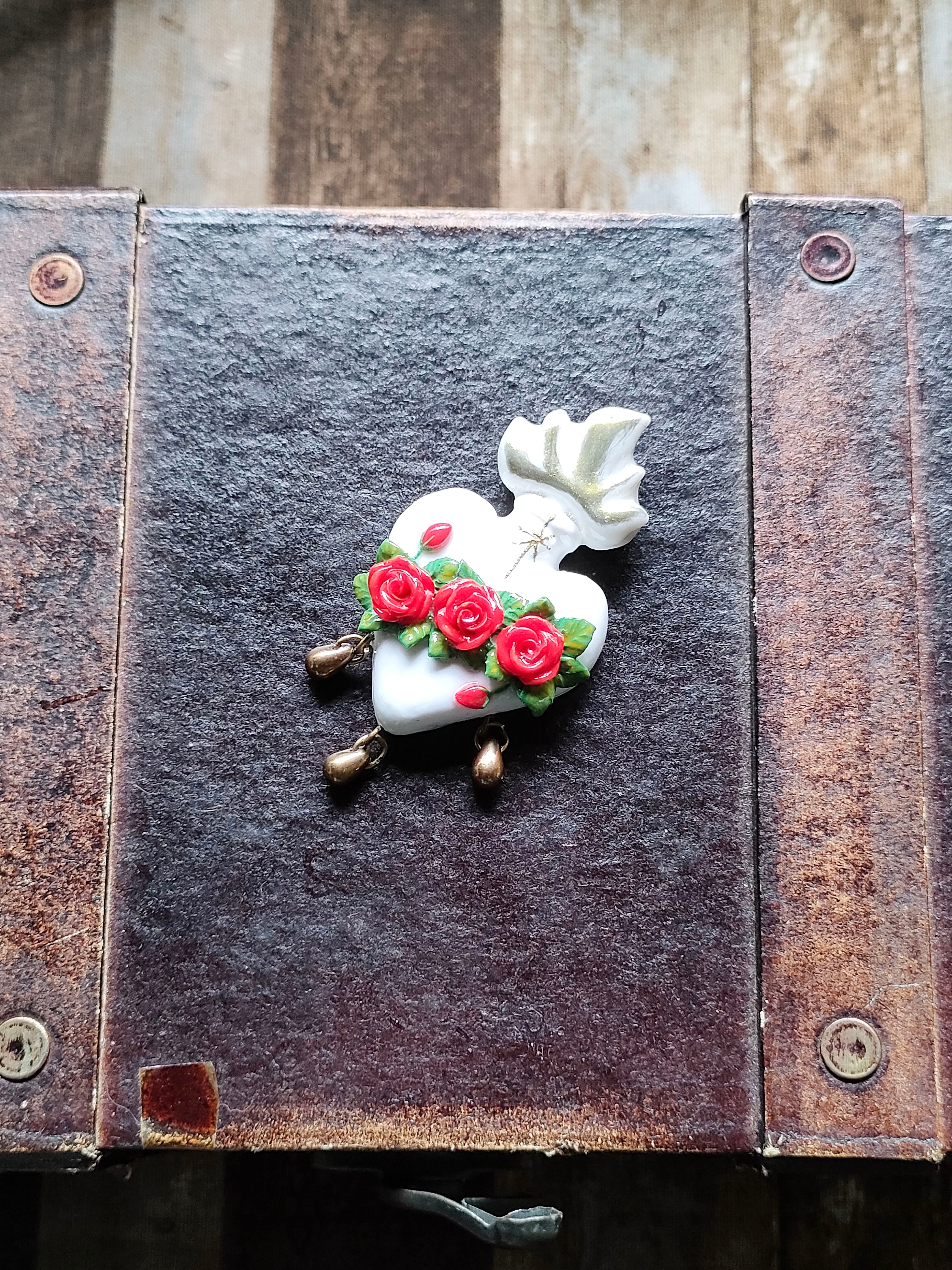 神聖な「少女」の心を護り続けるために祈りを込めて贈るアクセサリーとして制作されました。主に薔薇や百合と共にありますが、”元の元の持ち主”である少女自身を表すモチーフになっている場合もあります。