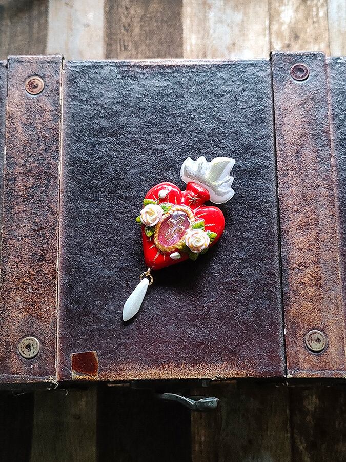 神聖な「少女」の心を護り続けるために祈りを込めて贈るアクセサリーとして制作されました。主に薔薇や百合と共にありますが、”元の元の持ち主”である少女自身を表すモチーフになっている場合もあります。